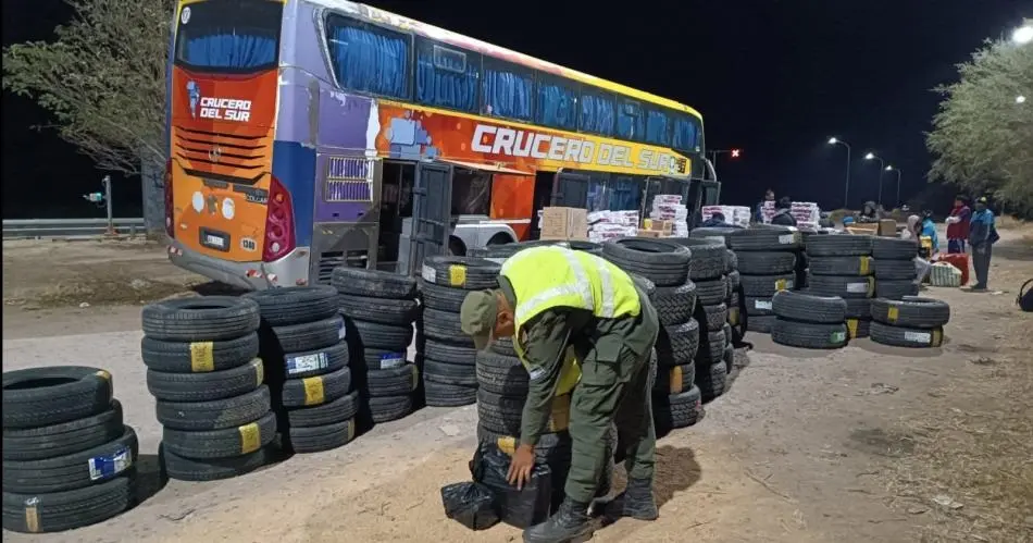 Los gendarmes procedieron a la requisa del micro y en el interior hallaron decenas de cubiertas de diferentes rodados, por lo que solicitaron la documentación correspondiente, y los pasajeros admitieron no contar con ella.